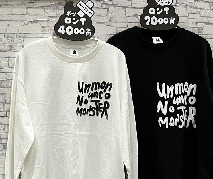 胸元の大きなロゴが目を引くunmonのオリジナルロンTです!